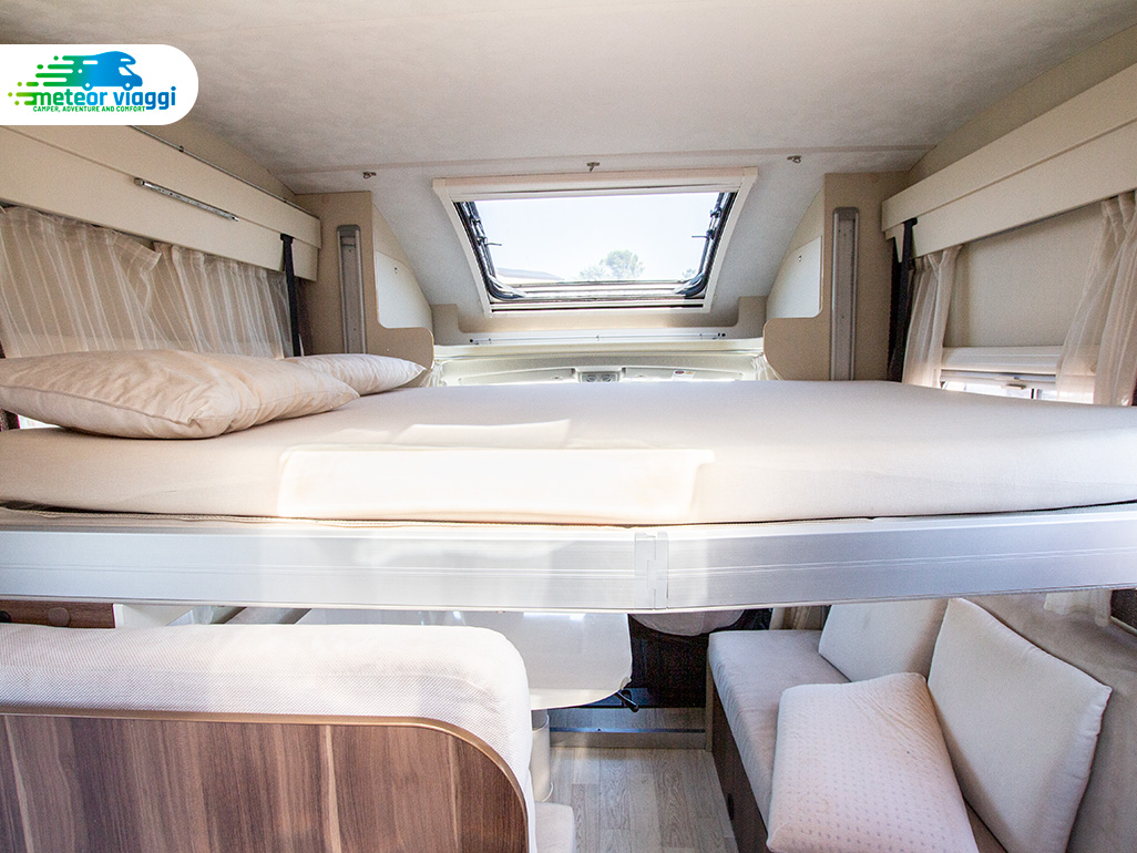 | Dimensioni letti | Letto matrimoniale in mansarda (190×140 cm.) - Letto matrimoniale dinette (220×120 cm.) |