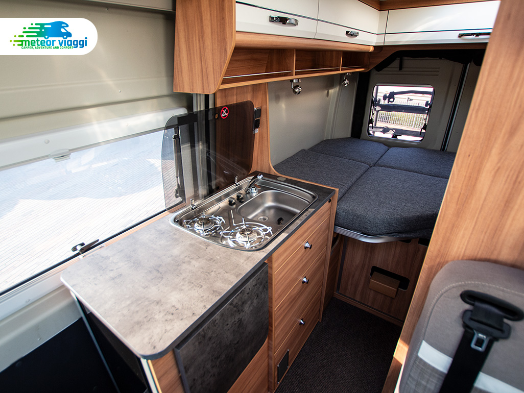 | Dimensioni letti | Letto matrimoniale in coda (190×140 cm.) - Letto singolo applicabile in dinette (180×80 cm.) |
